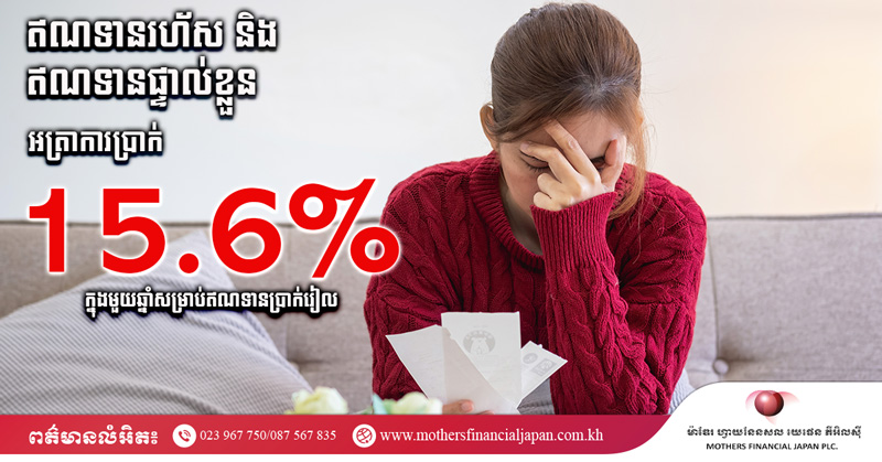 We have a special gift for Quick Loan and Personal Loan, an interest rate 15.6% per year​ for KHR disbursement.